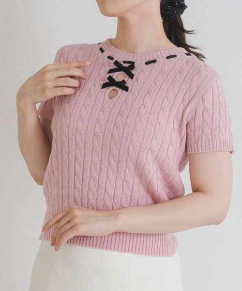 2026 Spring&Summer Item 配色デザインが目を引く、フェミニンサマーニットリボンディテールで、上品な可愛らしさをプラス 【 design 】 表情のある編地で仕上げた、 半袖ニットトップス。襟元の配色ラインがアクセントとなり、 クラシカルな印象に仕上げました。 フロントのリボンデザインが、 女性らしい華やかさをプラス。コンパクトなシルエットで、 すっきりとバランスよく着こなせる一枚です。 【 styling point 】 フレアスカートやマーメイドスカートと合わせた、 フェミニンスタイルにおすすめ。パンツやデニムと合わせれば、 きれいめカジュアルな着こなしも楽しめます。 ボトムにインすることで、 スタイルアップしたバランスのよいコーディネートに仕上がります。 ※ご覧のモニター環境や光の照射・角度により、画像の色味と多少異なる場合がございます。ご了承ください。 【 お買い物をお楽しみいただく為に 】▼お気に入り登録をオススメします。 『♡』をクリックすると…・《商品のお気に入り登録》で再入荷通知や ラスト1点の通知、セールやクーポンの通知も 受け取ることができます。・《ブランドのお気に入り登録》で新作商品や再入荷など、 お得な情報を受け取ることができます。 〇検索ワード〇 フェミニン ガーリー かわいい きれいめ 10代 20代 30代 デート服 デートコーデ ラブリー エレガント 推し活 観劇 春服 リボン バレエコア クラシカル おでかけ 花見 さわやか 今から使える オフィスコーデ 通勤 仕事 2way 参戦服 メンカラ