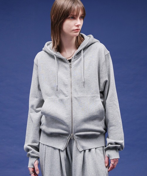 selle glantからデザイン・コスパどちらも最強な ジップパーカーをリリース致します。 ———————————————— 【デザインポイント】 ・フロントダブルジップ 着こなしの幅を広げるダブルジップ仕様を採用。 レイヤードからシルエット調整まで、 スタイリングの自由度を高めます。 ・スプレー加工 フード縁・裾・肩・袖など、切り替え部分に一点一点手作業でスプレー加工を施し、 奥行きのあるヴィンテージライクな表情に。 ブラックにはホワイト、グレーとブラウンにはブラックのスプレーを入れ、 カラーごとに異なる表情を演出しています。 ・フィンガーホール 袖リブにはフィンガーホールを搭載。 トレンド感のあるスタイルを楽しめる、 実用性とデザイン性を兼ね備えたディテールです。 ・ダメージ加工 フード縁、裾口、袖口、ポケット口に程よいダメージ加工をプラス。 シンプルながらも抜け感のある、細部まで計算されたデザインに仕上げました。 ———————————————— サイズ感は程よくジャストめで、やや短丈のバランスに設定。 どんなスタイルにも取り入れやすく、自然とスタイルアップを叶えます。 フードは大きめに設計しており、 被った際にも雰囲気の出る立体的なシルエットを実現。 生地には綿100%・380gのヘビーウェイト素材を使用。 しっかりとした肉感で、長く愛用できるタフな一着です。 カラーは3色展開。 加工感が際立つブラック、 定番で汎用性抜群のグレー、 トレンドを押さえたダークブラウン。 同素材のパンツ【661566】とセットアップでの着用も可能。 今季も間違いないアイテムになっております。 --selle glantの身長別推奨サイズ-- 〜165cm Sサイズ 166〜167cm S or M 168〜173cm Mサイズ 174〜175cm M or L 176cm〜 Lサイズ" ————————————— “noise”を拒む感性へ。 静かに主張するクリーンで鋭く色気のある “silent chic”なモードブランド。 新作情報は公式アカウントからチェック! ↓ Instagram【@selleglant_official】 TikTok【@selleglant_staff】 —————————————