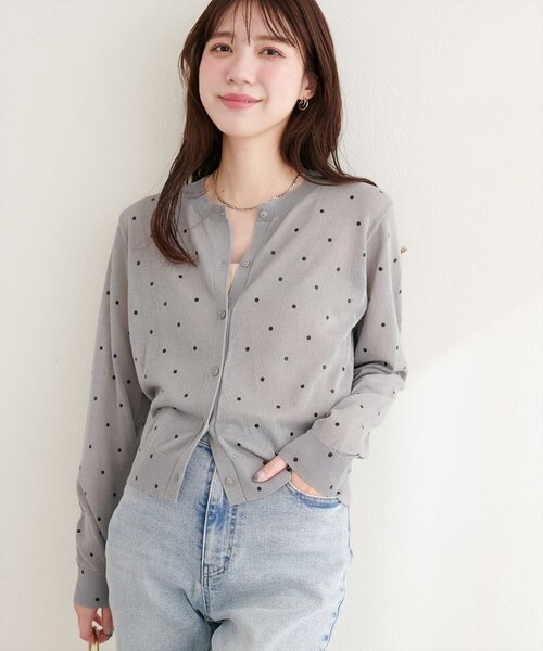 【2026SS natural couture】 ドットシアーカーディガン ■Design 全体にあしらわれたドット柄は、クラシカルでありながらもモダンな印象に。 小さめのドットが上品さをプラスし、カジュアルになりすぎないのがポイント。 首元はベーシックなクルーネックで、インナーを選ばず着回し力も抜群です。 フロントボタンを留めてトップスとして着たり、さらっと羽織ってカーディガンとして着たり、 様々な着こなしをお楽しみいただけます。 ■Styling デニムと合わせてカジュアルに着こなすのはもちろん、 ワンピースやスカートと合わせてフェミニンに着こなすのもおすすめです。 オフィスシーンでは、ブラウスやカットソーの上から羽織れば、きちんと感をプラスしつつ、おしゃれな印象を与えられます。 シンプルなTシャツにさらっと羽織るだけで、いつものスタイルがぐっとこなれた印象に。 シアー素材で透け感があるため、インナーのデザインや色で遊べるのも嬉しいポイント。 アクセサリーは華奢でシンプルなものにすると、よりドット柄を引き立ちます◎ ■Fabric 軽く、さらりとした生地感。 =================== お手入れ方法:ドライクリーニング・ウエットクリーニング 伸縮性:あり 裏地:なし 透け感:あり 光沢感:なし 生地感 :さらりとした生地感 =================== ※着用、お取り扱いの際は、商品に付いている品質表示とアテンションタグを必ずご確認ください。 【お気に入り登録でお得な情報がいっぱい】 ・「商品のお気に入り登録」で再入荷通知や、ラスト1点の通知、セール通知をいち早く受け取ることができます。 ・「ブランドのお気に入り登録」で新商品や再入荷など、お得な情報を受け取ることができます! ※店舗の入荷時期は商品によって異なります。 店頭の在庫状況につきましては各店舗にてお問い合わせください。 ※撮影時の光の関係で、画面上の画像と実際のお色とでは若干の色差が生じる可能性がございます。 また、ご覧いただいているモニター画面や、お使いのブラウザによっても、お色の違いがございますことをあらかじめご了承くださいませ。 20260227 2026SS_natu 26SS