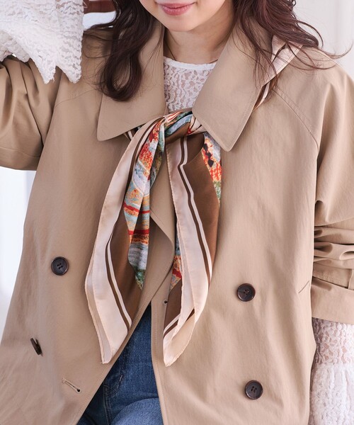 アレンジの幅が広がる、大判スカーフ【2026 Spring】【26SS】<POINT>・存在感のある90cmサイズで、スタイリングの主役になる大判スカーフ。・コーディネートに取り入れやすい、上品で華やかな柄デザイン。・首元にはもちろん、肩掛けやバッグアレンジなどマルチに楽しめます。【カラー】ベージュ系(マーブル柄)、ネイビー系(フラワー柄)の2色展開。【おすすめのスタイリング】首元に巻いてきれいめスタイルのアクセントにしたり、肩にさらっと掛けてコーディネートのポイントにするのもおすすめ。バッグに結んだり、ビスチェ風、ベルトにアレンジするなど、90cmサイズならではの幅広い使い方を楽しめます。※画像の商品はサンプルです。 実際の商品と仕様、加工、サイズが若干異なる場合がございます。