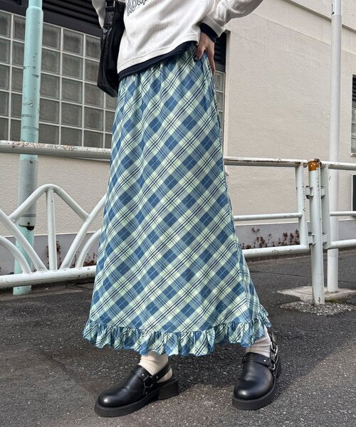 楽ちんなのにしっかり可愛い優秀ロングスカート▼ポイントメッシュ素材にチェック柄と星柄を重ねた、遊び心のあるロングスカート。すとんと落ちる綺麗なシルエットの裾に、細かなフリルをあしらって、歩くたびに可愛らしく揺れるデザインに仕上げました。ウエストはゴム仕様なので、一日中穿いていても疲れにくく、リラックスして過ごせるのが嬉しいポイント。主張しすぎないチェック柄は、カジュアルなTシャツからブラウスまで、手持ちのアイテムに合わせるだけでパッと鮮やかなコーデが完成します。▼スタイリングオーバーサイズのスウェットやニットを重ねて、裾のフリルとメッシュの透け感をチラ見せさせるレイヤードスタイルがおすすめです。足元はあえてゴツめのスニーカーやブーツでボリュームを出すと、星柄のポップさと絶妙にマッチしてバランスよくまとまります。---------------------------------------------------透け感:ややあり伸縮性:あり裏地:あり光沢:なし---------------------------------------------------家庭洗濯: 30℃限度/ 洗濯機[非常に弱い]タンブル乾燥: 不可アイロン: 不可クリーニング: ドライクリーニング不可, 非常に弱い処理によるウェットクリーニング可---------------------------------------------------※着用、お取り扱いの際は、商品についている品質表示とアテンションタグを必ずご確認下さい。※画像の商品はサンプルです。実際の商品と仕様、加工、サイズが若干異なる場合がございます。※可能な限り実物に近いカラーにて掲載していますが、撮影環境やモニター環境などにより製品と画像のカラーがやや異なって見える場合もございます。予めご了承ください。【お買いものをよりお楽しみいただく為に!!】▼商品のお気に入り登録(ハートマークをクリック)お気に入りアイテムの完売カラーの再入荷通知や、ラスト1点の通知、セールの通知も受け取ることができます。▼ブランドのお気に入り登録新商品や再入荷、クーポン配布などのお得な情報を受け取ることができます。