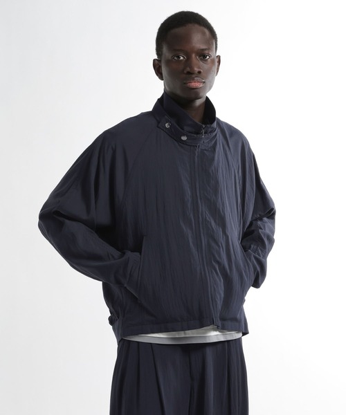 ーーー 洗練された落ち感と、ナイロンの軽やかさが共鳴するハイネックブルゾン。 ーーー DESIGN ミニマルでモードな印象のハイネックブルゾン。 襟元はスナップボタン仕様のハイネックを採用し、閉じることでモードかつシャープな印象に、開けることでリラックスした襟元を楽しめる2WAY仕様。 無機質なジップラインと、素材のドレープ感が織りなすコントラストが、都会的なミリタリースタイルを演出します。 MATERIAL レーヨンをベースにしたナイロン混紡生地を採用。 レーヨン特有の滑らかで美しい落ち感にナイロンの適度なハリ感と軽やかさを加えることで、上品な光沢感とストレスフリーな着心地を両立しました。 独自のシボ感がある生地は、光の当たり方で豊かな表情を見せ、シンプルなコーディネートに奥行きを与えます。 また、適度な薄さでありながら頼もしさも感じさせる質感のため、春夏のライトアウターとしてはもちろん、冬場のインナー使いとしても重宝する万能な素材感です。 SET ITEM セットアップ対応パンツはコチラを検索→【652671】 セットアップ対応シャツはコチラを検索→【663077】 セットアップ対応ジャケットはコチラを検索→【587999】 ※サンプルにて撮影をしておりますので、実際の商品とは仕様や加工・サイズ等が若干異なる場合がございます。 ※屋外の光や照明の当たり具合で、実物と色味が異なって見える場合がございます。詳細画像の色味をご確認ください。 なお、商品の色や質感を出来るだけ忠実に再現するよう心掛けておりますが、パソコンなどの環境により、実物と若干異なる場合がございます。 ※写真を許可無くコピー・転用することは固くお断りします。