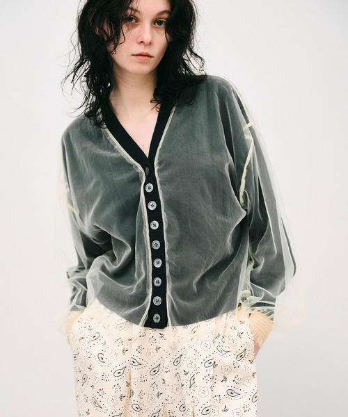2026SS さらりとしたコットンカーディガンに、柔らかなチュール素材を重ねたレイヤードデザイン。異素材を掛け合わせることで、シンプルでありながら一枚でスタイリングが完成する存在感のあるアイテムに仕上げました。 透け感のあるチュールが動きに合わせて揺れ、軽やかさと奥行きを演出。ベースはミニマルなVネックカーディガンのため、甘さに傾きすぎず、日常に取り入れやすいバランスに整えています。 袖はチュールにボリュームを持たせ、袖口はリブのような仕様に。ふんわりとしたシルエットを保ちながらも、締め付けすぎない設計でストレスのない着用感を実現しました。フロントにはフェイクボタンデザインを採用。半分は実際に開閉できる実用ボタン、残り半分はあえて飾りボタンとすることで、さりげない違和感と遊び心をプラスしています。 レイヤードで魅せる、新しいバランスのカーディガンです。 <カラーの組み合わせ> ・ネイビー×イエロー:ネイビーのコットンカーディガンにレモンイエローのチュール ・ベージュ×レッド:ベージュのコットンカーディガンにレッドのチュール ・ブラック×ピンク:ブラックのコットンカーディガンにピンクのチュール *適正量生産で私たちにできることからサスティナブルに取り組んでいます* 昨今問題視されているアパレル業界の大量生産・大量廃棄の問題。わたしたちは、せっかく思いを込めて作ったわたしたちの洋服が無駄に廃棄されることがないように、適正量をできる限り国内で生産しています。"作りすぎない"ことで、完売となりお届けまでにお時間を頂戴する場合もございますがご了承いただけますと幸いです。 取り入れるだけで存在感が出るノイズメーカーのお洋服は、休日のお出かけだけでなく、結婚式の二次会やパーティーシーン、セレモニーなどのコーディネートにもマッチするアイテム。 また、モードなアイテムだからこそあえてリュックやサコッシュ、バケットハットやキャップと小物を合わせてカジュアルダウンする着こなしもカワイイです。 スニーカーやデニム、チノパン、アーミー等を合わせることでストリートモードに、サンダルやスクエアトゥ、ブーツを合わせることでモードに、いろんなスタイルを可能にする洋服です。 NOISE MAKER(ノイズメーカー) 素材の良さはもちろん、パーツひとつひとつに丁寧な工程を施し、立体的で着心地の良い1着を作ることをモットーにしています。デザインのみならず、袖を通した瞬間の心地よさを大事にしているブランドです。 *お買い物をお楽しみいただくために* ▼商品のお気に入り登録 カートボタン付近の♡をクリックして商品をお気に入り登録をすると、完売カラーの再入荷通知や、ラスト1点の通知、セールの通知などを受け取ることができます。 ▼ブランドのお気に入り登録 「♡ブランド追加」または「♡このブランドをお気に入り登録」をクリックすると、新商品や再入荷等最新情報を受け取ることができます。