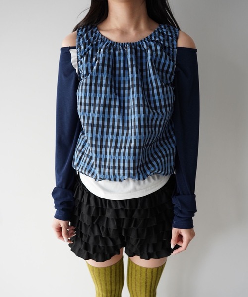 ノースリーブ仕様で、肩まわりと裾にゴムを施したブラウス。ネックラインから入るギャザーが自然な立体感を生み、程よく丸みのあるシルエットに仕上げています。全体はすっきりとしたサイズ感で、バランスよく着用できる一着です。チェック柄を全面に取り入れることで、コーディネートに程よいアクセントをプラス。シンプルな中にも存在感があり、1枚で着映えする仕上がりです。裏地付きのため安心感があり、デイリーに取り入れやすい点も魅力です。デニムやスラックス、ワイドパンツなど幅広いボトムと相性が良く、イン・アウトどちらの着こなしにも対応。季節感のあるスタイリングを楽しみたい方におすすめのアイテムです。詳細補足仕様:肩周りゴム、裾ゴム伸縮性:ゴム部分はあり透け感:なし光沢:なし裏地:あり厚さ:普通サイズ感:普通モデル情報model A:160cmmodel B:160cm【SANSëLF】▼お気に入り登録をおすすめします▼♡をクリック!お得なセール情報や、人気完売商品の再入荷情報ラスト1点の通知など、耳寄りなお買い得情報をいち早く受ける事ができます。ブランド【SANSëLF】のお気に入り登録もご一緒にお願い致します。取扱注意事項※サイズは、測定方法と測定者によって多少の誤差がありますのでご了承下さいませ。また体型によって、サイズ感に個人差がございます。(平置き採寸)※商品によってはシワがつきやすく、畳みジワや折りジワなどが強く出る場合がございます。その際は加湿した風呂場に数時間干すか、スチームアイロンでのお手入れをお勧めしております。※生地の素材上、においが気になる場合がございます。その際は陰干しして頂くと、ほとんど感じにくくなります。※レース等の繊細な素材を使用している場合には、お取り扱いにご注意下さい。※デニムを使用した製品は、インディゴ染めをしています。汗や摩擦により移染しやすいので、白色、淡色の組み合わせや重ね着はお避け下さい。※ニット素材を使用した製品は、重みで伸びやすくなりますのでハンガーでの保管はお控えください。※お洗濯の際には、品質表示の指示に従ってください。必要であれば専門店にご相談ください。家庭でご洗濯できる商品に関しては、洗濯専用ネットをご使用の上、個別での洗濯をお勧めいたします。お色物は、色移りする可能性がございます。※着用画像は撮影状況や光によって、多少異なる場合がございますので、置き画像をご確認下さい。※2023年7月1日より、環境に配慮した取り組みの一環として、紙のアテンションタグを廃止しております。