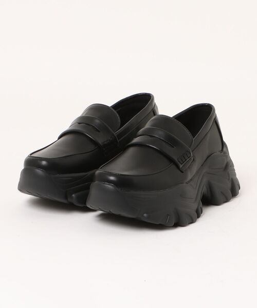 トラッドなペニーローファーのデザインに、エッジの効いた厚底トラックソールを組み合わせた一足です。 ・圧倒的なスタイルアップ ボリューミーな厚底ソールが脚長効果を発揮。高低差が少ないプラットフォームタイプなので、安定感があり、長時間履いても疲れにくい設計です。 ・トレンドの足元を演出 韓国ファッションやストリートスタイル、地雷系・量産型コーデまで幅広くマッチ。足元にボリュームを出すことで、全体のシルエットを華奢に見せてくれます。 ・オンオフ使える万能デザイン 定番の「ブラック」は通学や通勤、フォーマルなシーンのハズしアイテムとして。柔らかい印象の「ベージュ」は、淡色コーデや春夏のカジュアルスタイルにぴったりです。 ・ディテールへのこだわり 高級感のある質感を再現。シンプルなコインローファー仕様なので、靴下とのコーディネートも楽しめます。 【カラー展開】 ブラック:モードで引き締まった印象を与える定番カラー。 ベージュ:ヌーディーで足元を明るく見せる、こなれ感のあるカラー。