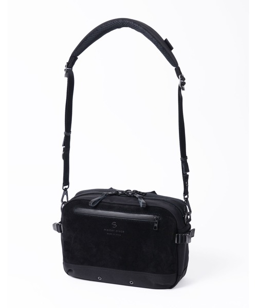 オリジナルの高機能ファブリックとベロアレザーというハイテクとローテクが組み合わさったルックスと、master-pieceらしい機能を備えたハイエンド・カジュアルシリーズ。本体素材は耐久性、耐水性、撥水性を兼ね備えたmaster-piece オリジナルファブリック “MASTERTEX-09™を使用。INVISTA 社のCORDURA® brand fabric の生産、品質基準を満たした認定工場において、タテ糸に840d、ヨコ糸に420d のHollofil Air™(66 ナイロンの中空糸) を2 本撚りしたものを2本引き揃えたものを使用し織り上げたCORDURA® brand fabric 基準に合格した、摩擦、引裂、すり切れ等に対する強度を備えた生地です。裏面にPU コーティングを施し、特殊透湿防水フィルム L-VENT® をラミネート加工することで 耐水性をさらに高め、トリコットナイロンを貼り合わせた3 レイヤー構造になっています。付属素材は2 種類のレザーと生地を使用しており、フロントフェイスに使用したレザーは、繊維の細かい厳選した原皮にオイルを絡めて鞣すことで撥水性のあるベロアレザーに仕上げています。銀層がないので通気性が良いだけでなく、厚みを持たせてコシを持たせています。毛足があり温かみのある独特の表面が特徴です。その他のパーツに使用しているレザーは、3M 社「SCOTCHGARD®」のモニタリング試験に合格した防水・防汚の革を使用。国産の良質なステアレザーを厳選して使用し、鞣しの段階で「3M」社製の防水剤をドラムに入れ、革の中まで浸透させています。その後、染色、オイルを含ませて下地を作り、仕上げの段階にも同社製の防水剤をスプレーすることで、さらに防水性を高めています。モニタリング試験は表面を削っても行われるので、効果がうすれることはありません。底面等の素材は通常ナイロンの約5倍の摩耗・引き裂き強度・耐久性を持つINVISTA 社の 1680d コーデュラバリステック® ナイロンを使用し、裏面にPVC 加工を施すことで更なる強度と防水性を向上させています。収納面においても内外装に大小、オンオフ問わず使い勝手を考慮した様々なポケットがついています。