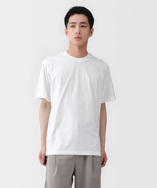 さらりとした表面感で肌なじみの良い素材で仕立てた一着です。綿はアフリカの自然が育てました。【素材】綿とポリエステルを混紡した天竺編み素材で、さらりとした肌触りのよさが特長です。綿の風合いの良さを残しながら洗濯後の乾きやすさと、軽い着心地を実現しました。一枚着でも重ね着でも使いやすい適度な厚みで、季節を問わず着用できます。【デザイン】身頃は直線的なボックスシルエットに仕立てているので、適度なゆとりがあり、性別問わず着用できます。着まわしやすいようにネック部分はベーシックなロックネック仕様を採用。厚みを抑えすっきりとした見え方で、幅広いコーディネートになじみます。男性だけでなく女性にも着やすいシルエット・仕様に仕立てています。【仕様】伸縮性:ややあり透け感:なしフィット感:普通お取扱い上のご注意 : ●本体に再生ポリエステルを40%使用しています。お取扱い上のご注意2 : ●濃色製品は使用中の摩擦や濡れた状態での接触により色移りする事があります。洗濯の際は他のものと分けて洗ってください。お取扱い上のご注意3 : ●素材の特性上、着用や洗濯・クリーニング時の摩擦により毛羽立ち、毛玉が発生します。その際はお早めに毛玉取り器などで手入れをしてください。お洗濯上のご注意 : ●淡色製品には蛍光増白剤入り洗剤を使用しないでください。お洗濯上のご注意2 : ●アイロンはあて布を使用してください。お洗濯上のご注意3 : ●プリント部分はアイロンでこすらないでください。