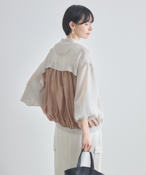 春のおでかけを彩る軽やか配色メッシュブルゾン <POINT> 計算し尽くされた唯一無二のバックシャンデザインは、ヨーク下から大胆に切り替えられた配色カラーの別布が、歩くたびに軽やかな躍動感を生み出します。 フロントにも片側だけに配色のパッチポケットをあしらうことで、アシンメトリーなモード感をプラス。 ご自宅で手洗い可能なイージーケア仕様なのも嬉しいポイント。 【デザイン・シルエット】 フロントを飾るのは、リッチな輝きが美しいゴールドカラーのジップ。 カジュアルになりがちなメッシュアウターに、ジュエリーのような華やかさと都会的なエッセンスを加えます。 ジップを上まで閉めればモダンな印象に、さっと羽織ればゴールドが縦のラインを強調し、スタイルをシャープに引き締めます。 首元や袖口はリブになっているので、袖をたくし上げた際もピタッと止まり、ボリューム感のある袖のニュアンスを自由にアレンジできます。 【素材感】 清涼感あふれるメッシュ素材は、レーヨンとポリエステルを絶妙にブレンドし、肌離れの良さと上品な透け感を両立。 インナーとのレイヤード次第で表情を変え、センシュアルでありながらヘルシーな肌見せを演出します。 再生繊維(セルロース)を使用した別布のしなやかな質感が、スポーティーなメッシュに大人のクラス感を添えます。 【カラー】 ブラック ベージュ アイボリー 3色展開 【スタイリング】 春先の軽やかなメインアウターとしてはもちろん、夏場の厳しい冷房対策や日差し除けとしても圧倒的な汎用性を発揮します。 ランチ会やショッピング、旅行など、どんなシーンでも「品のあるカジュアル」を完成させてくれる、頼れる一着です。 裏地:なし 光沢:なし 伸縮性:ややあり 透け感:あり 生地の厚さ:薄手 ポケット:あり ※照明の都合上、多少の色ブレが生じてしまう可能性がございますので、予めご了承くださいますようお願い致します。 --------------------------------------------------- ●お気に入り登録でお得情報を手に入れよう! 「商品のお気に入り登録」をすると、再入荷通知や、ラスト1点の通知、セールの通知など、お得情報が届きます。 また、マイページでいつでも確認が可能になります。 「ブランドのお気に入り登録」をすると、新商品や再入荷、などいち早くブランドの最新情報をお届けします。 ぜひ、ご利用ください。 ----------------------------------------------------