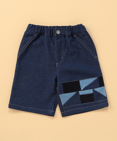 《デザイン》春夏のワードローブに欠かせない、毎日の装いを新鮮に見せてくれるハーフパンツが登場!左前には、デニムの濃淡を巧みに組み合わせたパッチワークをあしらい、シンプルな中にも可愛らしさが添えられ、さりげないのにしっかりと”特別感”を感じさせる仕上がりです。白いTシャツやさらりとしたシャツ、ボーダーなど春夏の定番トップスと合わせるだけで、上品さと遊び心が程よく調和し、今までにない新鮮なスタイリングが完成します。日常のお出かけからちょっとしたおしゃれの日まで、幅広くお使いいただけます。後ろポケットにはフェイクレザーのオリジナルパッチを添え、程よくモードなアクセントを効かせています。お子様一人でも着脱しやすいオールゴム仕様で内側に調整口があります。キッズ(商品番号:98-52PO32-206)まで展開していますので、お揃いで着ていただけます。《素材》デニムのような表情のストレッチ素材です。毛羽立ちが少なく表面に光沢感があり、上品でクリアな素材感が特徴です。肉感があり、仕立て映えのする素材です。インディゴ染料を使用していないので、色落ちの心配がありません。《取り扱い》強い日光(又は照明)を長時間受けますと変色の恐れがありますので、ご着用及び保管の際はご注意下さい。この製品は素材の特性上、毛玉が発生する場合がありますが、毛玉が出来てしまったら、小さなハサミ等で丁寧に取り除いて下さい。濃色品は、汗や雨で濡れた時、強くこすられた場合等、多少の色落ち、色移りするおそれがあります。長時間の浸漬や濡れたままの放置はお避け下さい。洗濯の際は淡色のもの(特に白いもの)とは別にお取り扱いください。#コムサベビー#ベビーボトム