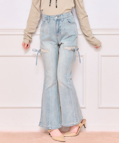 ◆甘さも履き心地も妥協しない♡サイドレースデザインデニム程よいフレアシルエットで脚をきれいに見せてくれる、スタイルアップが叶うデニムパンツ。サイドのカット部分にはレース素材をあしらい、肌見せしすぎない上品な抜け感を演出♡リボンディテールがアクセントになり、カジュアルなデニムにapres jourらしい甘さをプラスします。ポケット部分にはハート型のリベットを使用し、さりげない可愛さを添えるポイントに。ストレッチ素材を使用しているので、見た目以上に動きやすく履き心地も◎ハイウエスト仕様でウエスト周りはすっきり見えし、トップスインもきれいに決まります。ガーリーなトップスと合わせた甘辛ミックスはもちろん、シンプル合わせでも着映えする主役級デニムです♡---------------------------------------透け感:なし伸縮性:あり裏地:なし---------------------------------------※ご覧のモニター環境や撮影環境により実際の商品と多少色味が異なって見える場合がございます。ご理解の程よろしくお願いいたします。【お買い物をよりお楽しみいただく為に♪】▼商品のお気に入り登録をおすすめします♡をクリック!完売カラーの再入荷や、ラスト1点の通知、セールの際の通知を受ける事ができます。ブランドのお気に入り登録もご一緒にお願い致します。