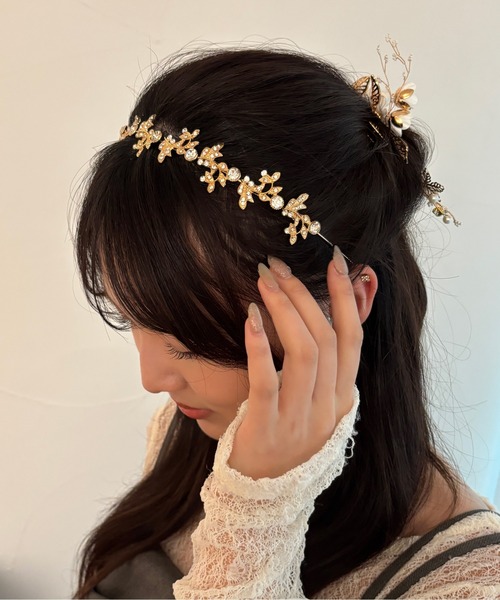 新作情報はInstagram公式アカウントからチェック!↓【@kutir_lune】-kutir lune-クティールリュヌ【特別な日を彩る、リーフモチーフカチューシャ】繊細なリーフモチーフにきらめくビジューをあしらった、上品なカチューシャ。華奢なラインに沿って並ぶ葉のデザインが、顔まわりをぱっと華やかに演出します。カラーはやわらかく華やかな印象の〈ゴールド〉と透明感を引き立てる〈シルバー〉の2色展開。動くたびに繊細に輝き、写真映えも◎卒業式や結婚式、二次会などのオケージョンシーンにぴったりのアイテムです。まとめ髪はもちろん、ゆるく巻いたダウンスタイルにも相性抜群。同日発売のフラワーモチーフヘアアクセサリー(品番:673314)と合わせたセット着用もおすすめです◎-kutirブランドコンセプト-"トレンド×kutir original"サイズやカラー豊富に展開中!古着らしさにトレンドを取り入れたnew style(WEB限定)※サイト上の商品名・カラー名と、お届け商品に記載されている名称が異なる場合がございます。※ご覧いただく環境により、実物と色味が異なって見える場合がございます。ご了承ください。【お買い物をよりお楽しみいただくために】▼商品のお気に入り登録(ハートマークをクリック)完売カラーの再入荷通知や、ラスト1点の通知、セールの通知も受けることができます。▼ブランドのお気に入り登録新商品や再入荷など、いち早くブランドのお得な情報を受け取ることができます。