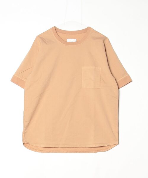 ゆったりとした空気感とシルエットのポケTです。 シンプルになりすぎないよう首と袖は少し大きめのリブを。 裾はラウンドさせることで立体感のあるシルエットを楽しめます。 カジュアルながら品のある素材はトラウザーとスタイリングして頂くと雰囲気が良いです。 【裏毛風二重織ストレッチ】 一見するとの布帛ように見える表面が特徴のニット素材。 伸縮の良いストレッチで、柔らかさと適度なハリ感があります。