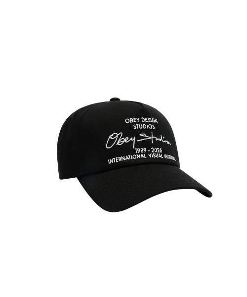 ・立体構造 ・先端カーブ付きつば ・ストラップバック閉じ具 ・OBEYアート刺繍