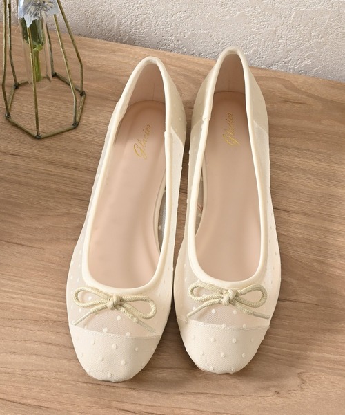季節感のある足元に【デザイン】すっきりスタイリッシュなスクエアトゥデザイン。さりげないリボンでフェミニンさをプラス。長時間履いても疲れにくい1.2cmのローヒール。【素材・機能】ほどよい透け感のメッシュ素材。足裏全体にフィットする高反発クッションで歩きやすい。しなやかな屈曲ソールで軽やかな歩行をサポート。【スタイル】どんなコーデにも合わせやすく、普段使いはもちろん通勤にも活躍。※湿度・摩擦により多少色落ちする可能性があります。品番:235-134-9472