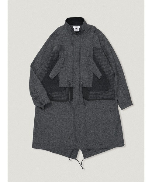 - elephant TRIBAL fabrics 2026 Autumn Winter collection 受注会開催中- ※3月22日(日)まで モッズコートとキルティングライナーをドッキングしたアイテム。 本来は裏面にあり表からは見えないキルティングライナーおよびポケット袋布を表使いし、内外の関係性を再構築したデザイン。 ヨークスリーブの構造をベースに再構築した立体設計により、可動性とシルエット形成を両立。 表地には適度な柔らかさを持つウールヘリンボーンを採用。 ライナーにはガンクラブチェック生地を使用し、ポケット袋布にはメランジ調ツィードを組み合わせることで、質感や表情の異なる表情のコントラストが特徴のアイテム。 ※製品加工の為、風合いやサイズは個体差がございますのでご了承ください。 ※画像はサンプル品になります。仕様が変更になる場合がございますので予めご了承の上ご注文くださいますようお願いいたします。 ※商品を受け取ってから8日以上が経った商品、ブランドタグや梱包を失くされた商品、また、着用感が見られる商品は返品交換を受け付けられないことがございます。予めご了承くださいませ。 【elephant TRIBAL fabrics(エレファントトライバルファブリックス)】 『あったけどなかった服』ミリタリー要素を軸に 色、素材、サイジングなどで変化を持たせ、やわらかさのある服 ■商品お気に入り登録 再入荷、残り1点、セールなどの通知を受け取ることが出来ます。 ■ブランドお気に入り登録 新商品や再入荷、ショップのおすすめトピックスなど、いち早くブランドのお得な情報を受け取ることができます。