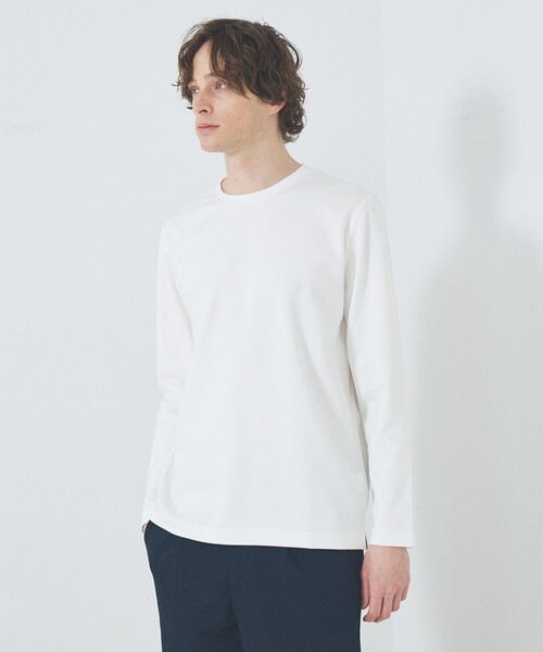 抗菌防臭機能で毎日清潔 <SMART CLOSET>大人が求めるスマートでエレガントなデイリーウエア。 快適に着まわせるミニマムなクローゼットを提案します。 【素材】 365日清潔に着られる、抗菌防臭機能付きのストレッチポンチ素材を使用。 シワや型崩れを抑え、忙しい毎日でも手間なく着用いただけます。 また、長時間の着用でも快適さが続く、優れたストレッチ性を備えています。 【デザイン】 シンプルなクルーネックスタイルでカジュアル過ぎない、きれいめなルックスに仕上げました。 適度なハリと上品な光沢感が、装いにさりげない高級感を添えます。 【コーディネート】 単品使いからジャケットやシャツのインナーにおすすめです。 セットアップのインナーとしても重宝します。 同素材モックネック長袖Tシャツ品番:71029720001 ********************** 透け感:なし 裏地:なし 伸縮性:あり 光沢感:なし 生地の厚さ:普通 クリーニング方法:洗濯機可 **********************