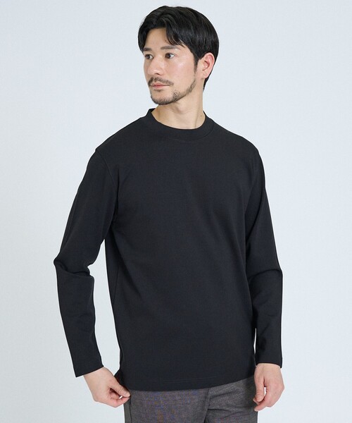 抗菌防臭機能で毎日清潔 <SMART CLOSET>大人が求めるスマートでエレガントなデイリーウエア。 快適に着まわせるミニマムなクローゼットを提案します。 【素材】 365日清潔に着られる、抗菌防臭機能付きのストレッチポンチ素材を使用。 シワや型崩れを抑え、忙しい毎日でも手間なく着用いただけます。 また、長時間の着用でも快適さが続く、優れたストレッチ性を備えています。 【デザイン】 着回しやすいようネックラインの高さを抑えたモックネック長袖Tシャツ。 ジャケットのインナーで使用すれば首元をすっきり見せながら、ジャケットの襟まわりの汚れ防止にも役立ちます。 適度なハリと上品な光沢感が、装いにさりげない高級感を添えます。 【コーディネート】 単品使いからジャケットやシャツのインナーにおすすめです。 セットアップのインナーとしても重宝します。 同素材クルーネック長袖Tシャツ品番:71029720000 ********************** 透け感:なし 裏地:なし 伸縮性:あり 光沢感:なし 生地の厚さ:普通 クリーニング方法:洗濯機可 **********************