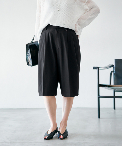 【2026SS】 IENA テーパードシルエットのスラックスをそのままカットしたようなイメージでデザインしたハーフパンツ。 ヒップまわりにゆとりを持たせたシルエットで、程よい抜け感と大人の余裕を感じさせる一本に仕上げました。 すっきりとしたラインで子どもっぽくならず、きれいめにも取り入れやすいバランス。 左前のベルトループに付けたDカンが、さりげなく光るアクセントになっています。 素材は梳毛調のT/R素材を使用。 オン・オフ問わず着回せる、上品さと軽やかさを兼ね備えたハーフスラックスです。 ********************** 透け感:なし 裏地:なし 伸縮性:ややあり 光沢感:なし 生地の厚さ:普通 ********************** ※取り扱いについては、商品についている品質表示でご確認ください。 ※こちらの商品は、IENAでの取り扱いになります。 直接店舗へお問い合わせの際はIENA店舗へお願い致します。 ※照明の関係により、実際よりも色味が違って見える場合があります。 またパソコン・スマートフォンなどの環境により、若干製品と画像のカラーが異なる場合もございます。 予めご了承ください。 ※商品の色味は、商品アップ画像をご参照ください。 本体:洗濯機洗い(弱)