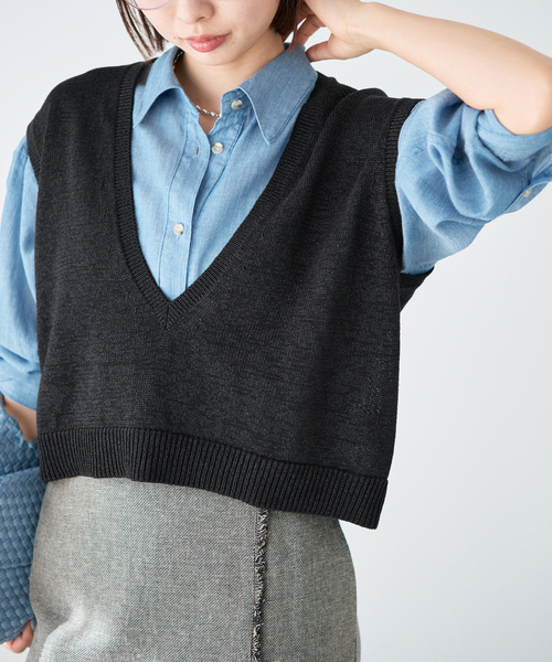 【2026SS】 IENA 和紙とコットンを撚糸した糸を使用し、ざっくりと編み立てた春ニットベスト。 非常に軽く、通気性に優れた素材で、さらりとした着心地が魅力です。 和紙ならではのドライタッチと、ほんのりナチュラルなツヤ感が上品な印象を与えます。 深めのVネックと程よくゆとりのあるシルエットで、シャツやカットソーとのレイヤードが映えるデザイン。 コンパクトな着丈がスタイリングにメリハリを生み、ワイドボトムやスカートとも好相性です。 デニムシャツを重ねてカジュアルに、シアーカットソーと合わせて女性らしく。 いつものコーディネートに重ねるだけで、春らしい抜け感をプラスしてくれる一枚です。 ※シリーズもございます。 コットンwashiニットプルオーバー(品番:26080900301010) ********************** 透け感:なし 裏地:なし 伸縮性:あり 光沢感:なし 生地の厚さ:普通 ********************** ※取り扱いについては、商品についている品質表示でご確認ください。 ※こちらの商品は、IENAでの取り扱いになります。 直接店舗へお問い合わせの際はIENA店舗へお願い致します。 ※照明の関係により、実際よりも色味が違って見える場合があります。 またパソコン・スマートフォンなどの環境により、若干製品と画像のカラーが異なる場合もございます。 予めご了承ください。 ※商品の色味は、商品アップ画像をご参照ください。 本体:手洗い可能