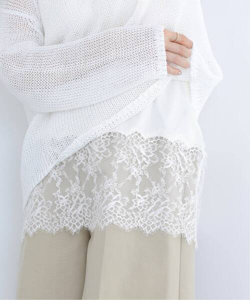 【2026SS】 IENA ※こちらの商品は、品番:26051900508010の追加品番です。 ※若干の仕様変更がある場合がございます。 ※グレー(006)・グリーンB(032)は旧品番で販売中です。 たくさんのリクエストにお応えして追加生産が決定! 繊細なリバーレースを贅沢にあしらった、サテン素材のキャミソール。 落ち感の美しいサテン生地に、デコルテと裾のレースが華やかさを添え、レイヤードするだけでスタイリングをぐっと女性らしく引き上げてくれます。 ジャケットやニットのインナーとしてはもちろん、シアートップスとの重ね着にもおすすめ。 程よい光沢感と軽やかな着心地で、シーズンを問わず活躍する一枚。 大人のワードローブに取り入れたい、着回し力の高いアイテムです。 ※取り扱いについては、商品についている品質表示でご確認ください。 ※こちらの商品は、IENAでの取り扱いになります。 直接店舗へお問い合わせの際はIENA店舗へお願い致します。 ※照明の関係により、実際よりも色味が違って見える場合があります。 またパソコン・スマートフォンなどの環境により、若干製品と画像のカラーが異なる場合もございます。 予めご了承ください。 ※商品の色味は、商品アップ画像をご参照ください。 本体:手洗い可能