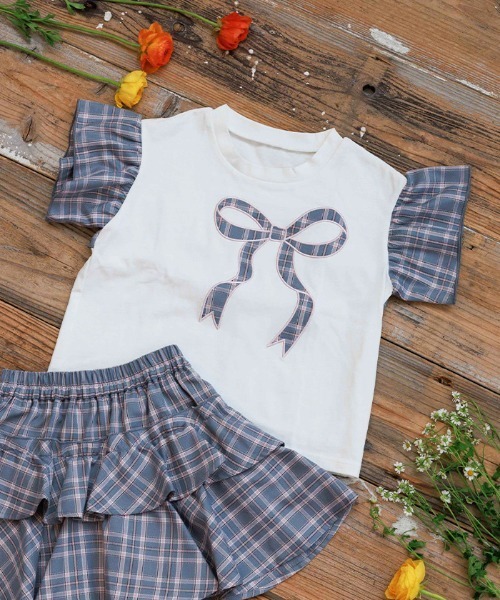 【アイテム説明】【商品紹介】オリジナルチェックのリボン刺繍がキュートなTシャツ【デザイン】袖のフリルがアクセントとなり遊び心のあるデザインが◎ゆるっとしたサイズ感でご用意しました。【コーディネート】オリジナルチェックのシリーズアイテムを合わせたコーディネートがおすすめです。▽ axes femme kids * アクシーズファムキッズ & axes femme PETIT LADY * アクシーズファムプチレディaxes femmeのテイストに、キュートさをプラスしたkids。ちょっぴり大人なPETIT LADY。女の子のオシャレを叶える フェミニンガーリースタイル**********************.。.: お気に入り登録のおすすめ :.。.∇気になるアイテムを登録∇ハートをクリックしてお気に入りに登録すると完売カラーの再入荷やラスト1点の通知、セールの通知を受けとることができます。∇ブランドを登録∇新商品や再入荷、セール通知など、いち早くブランドの情報を受けとることができます。是非ご利用頂き、お買い物をお楽しみ下さい。.。.: 商品について :.。.・サイト上のカラー名と、お届け商品に記載されているカラー名が異なる場合がございます。・商品の色味は、撮影場所や光のあたり具合、お客様のお使いのPCのモニター環境などにより色味が違って見える場合がございます。予めご了承の上ご注文下さい。.。.: 返品・キャンセルについて :.。.・着用、洗濯後の返品は致かねます。・商品到着後、着用前に商品を確認して頂きますようお願い致します。