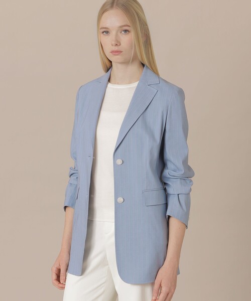 【着用推奨シーズン:春・秋】 <素材説明> イタリアのNALYA(ナリヤ)社の素材を使用しています。レーヨンクレープ糸を使用することで、清涼感のある風合いに仕上げています。また、リネンの表情を残しつつ、ストレッチ性も兼ね備えたイタリアならではの生地です。 <デザインポイント> ナローな肩回りと程よく身体から離れたリラックス感のあるシルエットで、プレスが効いたラペルがシャープな印象のジャケットです。着丈が長く裏地がない為、春先にサラッと着用していただけます。