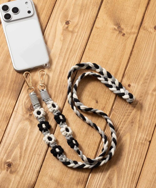 カラフルなお花が可愛いあみあみスマホショルダーストラップ お持ちのスマホケースに付属のシートを通すだけで簡単に装着できます。 太さがあるので、肩が痛くなりずらく長時間の使用にも適しています。 スマホだけでなく、バッグのショルダーストラップや、ポーチや鍵にとりつけてもgood! カラフルで存在感あるストラップはコーデのアクセントに◎ 日常使いから、旅行、フェスやアウトドアにもぴったりのアイテムです。 豊富なカラーバリエーションでお気に入りがきっとみつかるはず 自分用にはもちろん、ちょっとしたプレゼントやお揃いのギフトにもおすすめです。 ※付属のシートの穴にカラビナが1つしか入りません。 カラビナにカラビナを通して使用ください。
