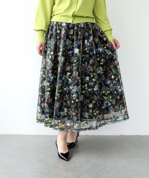 ■商品詳細カラーの糸を使ったフラワー刺繍が素敵なスカート。 ふんわりとしたフレアラインは美しく女性らしさを演出してくれます。 フワッと揺れるスカートに春を感じるアイテムです。 ウエストゴムなのも嬉しいポイント! -------------------------------------- 透け感:なし 裏地:あり 伸縮性:なし ケア方法:手洗い可 ※お洗濯の際は洗濯表示を必ずご確認ください。 -------------------------------------- <コーディネートmodel166cm> <詳細画像model162cm>