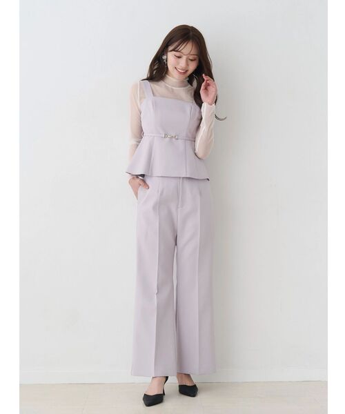 ロンパースのようなキレイ目セットアップ。程よく艶のあるビスチェタイプのトップスは、パネル切り替えを入れて、フィットアンドフレアなシルエットが美しく見えるよう仕立てました。 ウエスト部分にはビット付きの細ベルトを付けているので、ウエストマークしてスタイルアップも間違いなし。 パンツはウエスト部分にさり気ないレイヤード風デザインを同素材でいれており、単体で着てもシンプルになりすぎないデザインに。 膝の高い位置から裾に向かって程よく広がるフレアシルエットが脚長効果もありスタイルアップさせてくれます。 ▼スタイリング セットアップで着て、ジャケット羽織やノースリーブニットをインナー合わせがおすすめ。 特別なシーンには、シアートップスをインして、オケージョンアイテムとしても◎ フラットな素材を使用しているため、上品に着こなしていただけます。 ~~ZOZOTOWNでお買い物を楽しむ便利機能~~♡商品のお気に入り登録 完売カラーの再入荷時、ラスト1点の時、セール開始時に通知でお知らせします。 予約アイテムが入荷して通常販売になった時もお知らせしてくれます! ♡ブランドのお気に入り登録 新商品や再入荷、セールやクーポン情報など、 ブランドのお得な情報をいち早く受け取ることができます! ※実際にお届けする商品と仕様やサイズが異なる場合がございます。 また、生産の都合上、お届け時期が前後する場合がございます。 ※着用画像は全てサンプルです。 ※SM着丈差トップス1.5cm ※パンツ4.5cm差