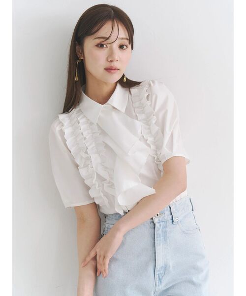 シャツ地でフリルをあしらった今の雰囲気にぴったりなシャツブラウスです。 前中心にアシンメトリーにひらっとしたフリルが施され、アクセントになっています。ボタンはフリルに隠れる仕様になっています。 袖は程よくパフになっていて、女性らしい柔らかなシルエットになっています。 身頃はダーツが入って体にフィットするので、たっぷりとフリルが入っていますがすっきりと見せることができます。 ▼スタイリング デニムですっきりと合わせて足元をクリアサンダルにして抜け感を出したり、マーメイドスカートと合わせてフェミニンに着こなしたり、 ミニボトムと合わせてトレンドコーデにしたりと幅広い着こなしをお楽しみください。 ~~ZOZOTOWNでお買い物を楽しむ便利機能~~ ♡商品のお気に入り登録 完売カラーの再入荷時、ラスト1点の時、セール開始時に通知でお知らせします。 予約アイテムが入荷して通常販売になった時もお知らせしてくれます! ♡ブランドのお気に入り登録 新商品や再入荷、セールやクーポン情報など、 ブランドのお得な情報をいち早く受け取ることができます! ※実際にお届けする商品と仕様やサイズが異なる場合がございます。 また、生産の都合上、お届け時期が前後する場合がございます。 ※写真はすべてサンプルです。 ※身頃一番下のボタンはボトムにインしやすいようにフリルからボタンホールを離します。