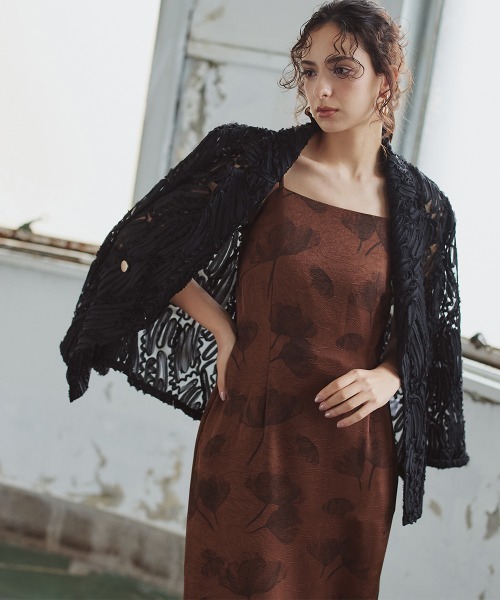 【Callarus(カラルス)】 「正解を纏うのではなく、意志を纏う。」 <自分らしく上品で美しい装いを大切にする方へ> シーンにもテイストにも年齢にも縛られない自由な着こなしを実現する上品な1枚で、日常に少しの特別感を。 -------------------------------------------------- 意志ある一着。人生に寄り添う「シーンレス」な造形美 「出番は一度きりじゃない。人生のあらゆる瞬間に寄り添う、新しい装いの在り方。」 ■ オケージョンアイテムの悩みを解消。 着用機会が限定されがちなドレスの概念を、Callarusはデザインの力で「毎日でも着たくなる一着」へと昇華させました。 ■ 繊細な装飾が織りなす独創的な佇まい ・流れるような曲線を描くテープ刺繍が、他に類を見ない圧倒的な存在感を放ちます。 ・程よくゆとりのあるダブルブレストのデザインが、クラシックながらもモダンな印象を与えます。 ・透け感のあるシアー素材をベースに刺繍を施すことで、軽やかさと奥行きのある表情を両立させました。 ■ 凛とした佇まいを作る「造形美」 ・立体的なテクスチャーが光を複雑に反射し、顔周りを華やかに彩りながら肌を美しく見せます。 ・袖口をラフに捲り上げることで抜け感が生まれ、こなれた大人のお洒落を演出します。 ■ 美しさを引き出す「体型カバー」のこだわり ・腰回りを自然に隠す絶妙な着丈設定により、パンツスタイルもスカートスタイルもバランス良く決まります。 ・視線を集める複雑な刺繍デザインが身体のラインを曖昧にし、自然にスタイルアップを叶えます。 ■ 想像を越える「着回し力」で、ハレの日から日常まで 【 オケージョン 】:シンプルなドレスやセットアップに羽織るだけで、格調高いセレモニースタイルが完成します。 【 カジュアル】:デニムやワイドパンツと合わせることで、モード感漂う大人のデイリースタイルへとシフトします。 ■ 誰をも美しく見せる「骨格別」アプローチ・ 骨格ナチュラル:素材の表面感とゆとりのあるシルエットが、フレーム感を美しく引き立てます。 ・ 骨格ストレート:ダブル仕立てのVラインが胸元をすっきり見せ、高級感のある刺繍がハリのある質感と調和します。 ・ 骨格ウェーブ:軽やかなシアー素材が重たさを感じさせず、華やかな装飾が上半身に視線を集めてくれます。 ■ おすすめ着用シーン 結婚式、披露宴、二次会、卒業式、入学式、七五三、お宮参り、女子会、食事会、ランチ、ディナー、観劇、お出かけ ■ 注意コメント デザインによりサイズ感が異なります。仕立てサイズ表をご確認ください。 <仕様> [本体]ナイロン100% [モチーフ]ポリエステル100% [モチーフ押さえ糸上糸]ナイロン100% [下糸]ポリエステル100%(編物) 【裏地】無 肩パッド無 前ボタン開 ポケット無 ※柄の出方が多少異なる場合があります。 ※繊細な生地を使用しているため、引っかかりなどにご注意ください。 <洗濯方法> ドライクリーニング ■キーワード オールシーズン、冬、夏、春、秋、Callarus、カラルス、ドレス、ボレロ、 お呼ばれ、 レディース、 ジャケット、 テープ刺繍、 シアー、 ダブルブレスト、 体型カバー、 着痩せ、 20代、 30代、 40代、 50代、普段使い、お出かけ、卒業式、入学式、セレモニー、結婚式、自分らしさ、コーデ、着回し、入卒、よそいき、食事会、デザイン、二次会、謝恩会、同窓会、成人式、カジュアル、デイリー、ハレの日、オケージョン、フォロー、Callarus, カラルス, ドレス, ワンピース, お呼ばれ, レディース, ジャケット, テープ刺繍, シアー, ダブルブレスト, 体型カバー, 着痩せ, 20代, 30代, 40代, 50代, 普段使い, お出かけ, 卒業式, 入学式, セレモニー, 結婚式, 自分らしさ
