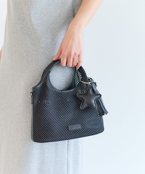 ーーー 軽やかなメッシュ素材が涼しげな印象のハンドバッグとミニポーチがセットになったマルチウェイバッグ。 星モチーフとタッセルのチャームが程よいアクセントになり、シンプルなスタイリングに遊び心をプラス。 コンパクトながら必要最低限が収まるサイズ感で、デイリーからお出かけまで幅広く活躍します。 ーーー ※屋外での撮影画像は光の加減で実際の商品より明るく見えたり、風合いが異なって見える場合がございます。 商品の色味はスタジオ撮影の画像を参考にして下さい ------------------------------------- ≪お買い物をよりお楽しみいただくために≫ ◆商品のお気に入り登録(ハートマークをクリック) 完売カラーの再入荷通知や、完売間近の通知、セールの通知も受けることができます。 ◆ブランドのお気に入り登録 新商品や再入荷など、いち早くブランドのお得な情報を受け取ることができます。 -------------------------------------