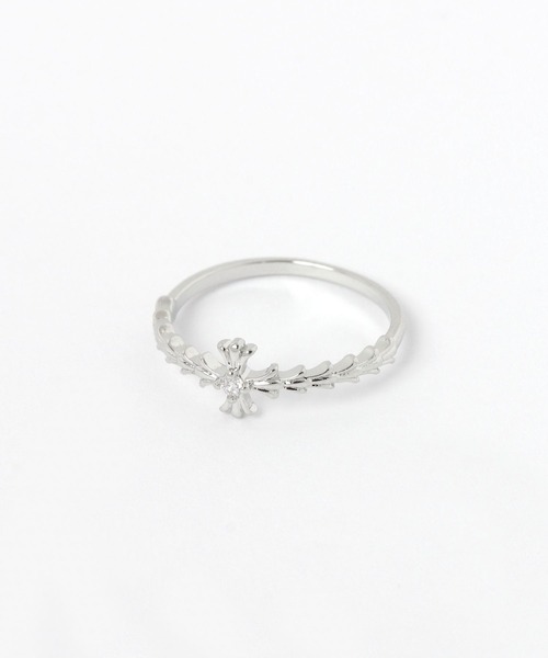 クロスモチーフのリング。ビジューをあしらい、小ぶりでかわいらしいアイテムです。
