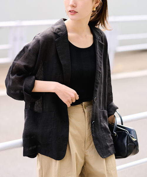 抜け感をつくる、軽やかリネンジャケット。ふんわりと空気を含むように編まれた、リネンストールのような表情豊かなメッシュ素材。ラフに羽織れる素朴さと、涼しげな雰囲気が魅力のカジュアルな一着です。着用を重ねることで、徐々に身体に馴染んでいくのもこの素材の味わい。**********************透け感:あり裏地:なし伸縮性:なし光沢感:なし生地の厚さ:薄手**********************※インド素材の特性上、織・編ムラ、スラブ、汚れやキズ、プリント抜け、擦れやシミのような色ムラが見られる場合があります。※繊細な素材のため、引っ掛けやポケットの荷物による滑脱にはご注意ください。※取り扱いについては、商品についている品質表示でご確認ください。※こちらの商品は、FRAMeWORK での取り扱いになります。直接店舗へお問い合わせの際は FRAMeWORK 店舗へお願い致します。※照明の関係により、実際よりも色味が違って見える場合があります。またパソコン・スマートフォンなどの環境により、若干製品と画像のカラーが異なる場合もございます。予めご了承の上ご注文ください。※商品の色味は、商品アップ画像をご参照ください。本体:手洗い可能