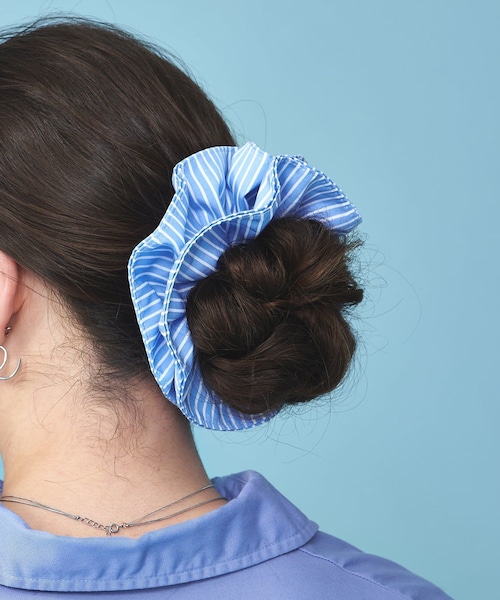 3coins(3coins)の「ストライプフリルシュシュ(シュシュ・レディース・ブルー・FREE)」の1枚目の写真