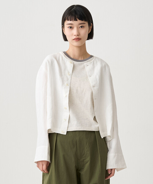 <デザイン> - 一枚仕立てのリネンカーディガン - クルーネック - ゆとりのあるサイズ感 - シャツとしても着用可能 - 左裾にアクセントになるブランドロゴ <素材> - 軽やかな40番手のリネン - タンブラー加工をした平織素材 - 洗いざらしのような風合い - 肌触りがよくふっくらとした素材感 ※着用、お取り扱いの際は商品についておりますアテンションタグ、洗濯ネームを必ずご確認ください。 ※モデル撮影画像は、光の当たり具合やパソコンなどの閲覧環境によって、実際の色味と異なって見える場合がございます。商品の色味は商品単体で撮影した詳細画像をご参照ください。 メーカー品番:#OR-A0783 YLM ORCIVAL | オーシバル 1939年にフランス・リヨンで設立。1950〜60年代にはフランス海軍の制服としてボーダーTシャツを提供していた、由緒あるマリンウェア・ブランド。