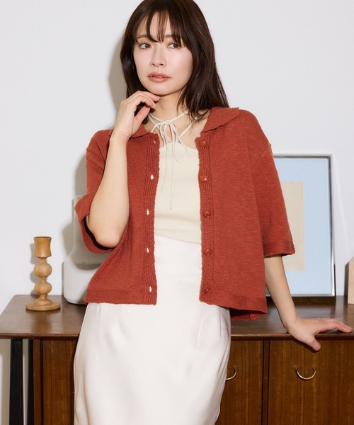 ーーー トレンドのポロ型デザインで大人のこなれ感を演出できるカーディガン ■point ・綿88%、ナイロン12%で肌触りが良く、通気性も良好 ・襟はしっかりとした総針仕立て、前立ては片畦編みで軽やかさをプラス ・ボックスシルエットのルーズなラインでリラックス感を演出 ・スラブ糸を活かしたシンプルなシルエットに、編地変化で動きと表情を出しています ・裾・袖先はガーター編みの飾りデザインと型崩れ防止の強度確保 ーーー ■styling チノパンやデニムパンツとの大人カジュアルなスタイルや、 フレアースカートなど女性らしいアイテムとのフェミニンな着こなしもおすすめ。 タンクトップやキャミワンピースにさらっと羽織るのも◎ カーディガンとしても、今季ぽく前をしめてトップスのようにして着こなすのも気分なアイテムです。 【INFOMATION】 ■商品のお気に入り登録 完売していても再入荷時に再入荷通知を受け取ることができますので、是非ご登録ください! ■ブランドのお気に入り登録 新商品や再入荷などの情報を受け取ることができますので、是非ご登録ください! ※ご注文いただいた予約商品のお届け時期の確認は、注文履歴ページより行えます。 ※屋外の光や照明の当たり具合で、実際の商品の色味とカラー別画像の色味に若干の違いが発生する場合がございます。 詳細画像と併せてご確認の上、ご注文いただきますようお願い致します。