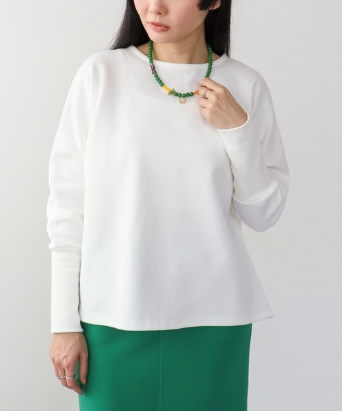 抜け感を演出するドルマンバックジッププルオーバー 立体感のあるサカリバ素材で仕立てたドルマンシルエットのプルオーバー。 ゆったりとした身幅がリラックス感のある着心地を叶えます。 背中のジップデザインがさりげないアクセントに。 シンプルながらも一枚で様になる、大人のデイリートップスです。 カラーはシンプルなオフとブラックの2色展開です。 -------------------------------------- 透け感:オフのみややあり 裏地:なし 伸縮性:なし ケア方法:洗濯機可 ※お洗濯の際は洗濯表示を必ずご確認ください。 --------------------------------------