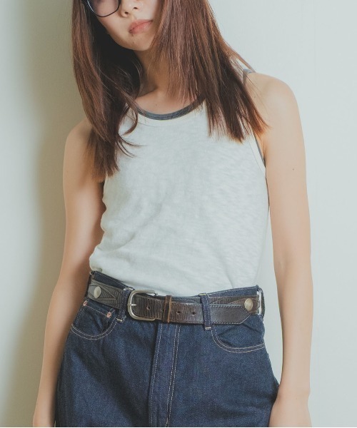 やわらかくて、どこか素朴。ガラ紡風の天竺を使った、肌あたりのやさしいタンクトップ。インナーとしてはもちろん、オーバーオールの中に忍ばせたり、そのまま一枚で着てもサマになる。01サイズからは、アメリカンスリーブでほんのりシャープなムードに。