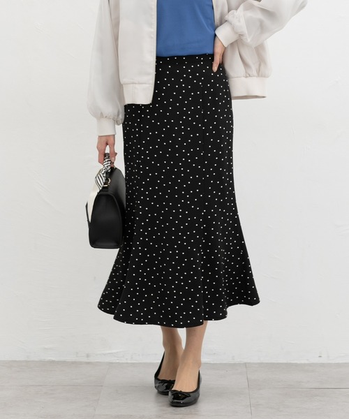 レディーなシルエット 【デザイン】 広がりすぎない、程よいフレア感のマーメイドシルエット。 前ウエストはすっきりきれい見えしながら、後ろはゴムで快適なはき心地。 自分にぴったりが見つかる、S~3Lまで揃った豊富なサイズ展開。 【素材・機能】 滑らかで落ち感のあるツイル素材。 【スタイル】 ブラウスやコンパクトトップスと合わせたきれいめスタイルからTシャツなどと合わせたカジュアルスタイルまで、幅広い着回しにロングシーズン活躍。 ※後ウエスト部分ゴム ●裏地/あり ※左脇ファスナー開き 品番:573-23-9005