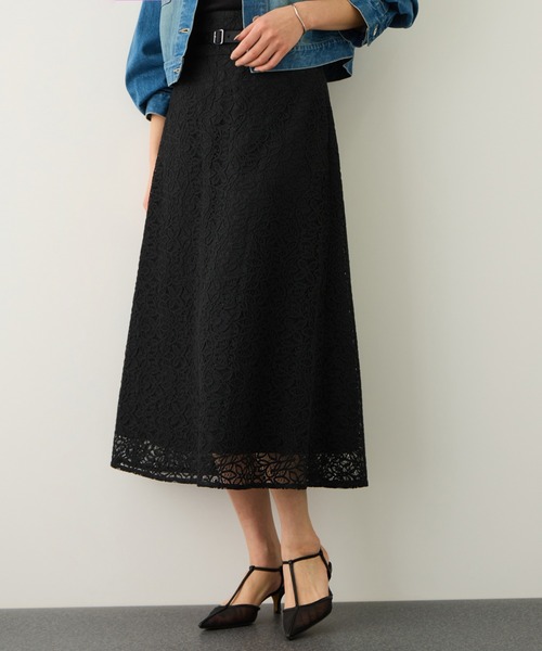 甘さを抑えた、洗練レーススカート【デザイン・シルエット】 ハイウエストデザインにベルトでウエストマークを施し、自然な脚長効果を演出するスカート。 程よく広がるフレアシルエットで、女性らしさがありながらも合わせやすいバランスに仕上げています。 後ろウエストはゴム仕様のため、見た目のきちんと感を保ちながらも、窮屈感のない快適な穿き心地を叶えます。 【おすすめのスタイリング】 きれいめトップスと合わせた上品なスタイリングはもちろん、デニムジャケットなどを合わせて程よくカジュアルダウンさせるのがおすすめ。 甘くなりすぎず、ROPE’らしい洗練された大人のスタイルを楽しめます。 【素材】 レースの産地として知られる福井県産のラッセルレースを使用。 ナチュラルな柔らかさと肌あたりの良さが特徴、上品な表情ながらもデイリーに取り入れやすい素材感です。 ---------------------------- 透け感:なし 裏地:あり 伸縮性:なし 光沢感:なし 生地の厚さ:中間 ポケット:なし 開き方:ファスナー開き 洗濯:手洗い可能 ---------------------------- 【モデル情報】 モデル身長:171cm 着用サイズ:38(ショートヘア) モデル身長:175cm 着用サイズ:38(ロングヘア) ※画像の商品はサンプルです。実際の商品と仕様、加工、サイズが異なる場合がございます。 ※撮影場所やライティング、お使いのモニター環境によって色の見え方が異なる場合がございます。 ※商品のカラーは画像の色味をご参照ください。動画は仕様説明のため、色味が実物と異なる場合がございます。