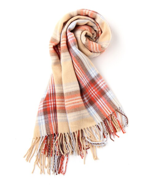 暖かみのある起毛ストール*シンプルコーデのアクセントにもなるチェック柄ストールは1枚あると便利なアイテム。首に巻いたり、肩に掛けたり、外出時のブランケット代わりにと大活躍間違いなし!