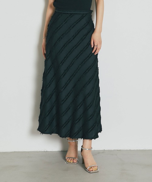歩くたび、表情を変える。斜めのフリンジラインが織りなす、大人カジュアルスカート。 表面感のあるジャガード織りのような生地に、同色のフリンジを斜めにあしらった、 こだわり抜いたテクスチャーが魅力のロングスカート。 バイアス方向に流れるフリンジのラインが、静止していても躍動感を与え、 スタイリングに豊かな奥行きをプラスします。広がりすぎない絶妙なAラインシルエットが、 腰回りをすっきりと見せながら、優雅で女性らしい佇まいを演出。 ブラウスを合わせてレディに仕上げるのはもちろん、シンプルなニットやTシャツと合わせても、 素材の存在感が際立ち、洗練されたモードな装いに導いてくれます。 日常の何気ない動きさえも美しくドラマティックに見せてくれる、主役級のボトムスです。 【Information】 ◆ZOZOTOWN店のクーポンやタイムセールなどのお得情報、ZOZO限定商品の新着情報は、 公式Instagram(@nostalgia_zozotown)にて配信中! ◆《お気に入り登録》がオススメ ・「商品のお気に入り登録」で再入荷通知や、ラストの通知、セール通知も受け取ることが出来ます。 ・「ブランドのお気に入り登録」で新商品や再入荷など、お得な情報を受け取ることが出来ます。 【商品について】 ◎着用画像は撮影条件により色具合が異なって見える場合がございますので、カラー別商品画像を参考にしてください。 またご利用端末環境により、商品画像と実物では多少色が異なって見える場合がございます。 ◎記載のサイズは実寸サイズとなります。但し、海外生産品の為、各採寸箇所実寸より 【約-2cm〜+2cm】は誤差の許容範囲とさせていただきます。 ◎当店で掲載されている商品は、撮影前にすべてプレスをかけております。 商品は、たたんで個別ビニール袋に入れておりますので、お届け時にはたたみシワ、細かいシワが残る場合がございます。綿・麻・レーヨンなどは強めにシワが残る場合もありますが、不具合ではございませんので予めご承知おきの上、お買い求めください。 ◎ “生地を織る際の糸の継ぎ目”や多少の“ほつれ”“綿・麻・ニット生地特有のネップ”が見られることがございますが、生産工程上避けられないものであり、品質上の問題ではございません。 また生地の織りに多少の他繊維が混紡している場合もございます。 【着用時のご注意点・お洗濯について】 ◎着用時、水分(汗・湿気)を含みますと色落ちする可能性がございます。また、摩擦等で色落ちの可能性もございますので、濃色の商品の着用時には十分ご注意ください。 ◎お洗濯時に色落ちの可能性のある濃色は他の繊維への移染を防ぐため、洗濯表示をご参照いただき単独でのお洗濯をお願いします。また洗濯後はすぐに形を整えて干して下さい。 漂白剤・乾燥機のご使用はお避けください。 ◎商品によっては繊維独特の匂いがある場合がございます。匂いが多少強く感じられるものもございます。数日のご使用や陰干しなどで気になる匂いはほとんど感じられなくなります。 【再販について】 ◎再販時は出来るだけ同じものを生産するようにメーカーに依頼しておりますが、生産時期により若干ではございますが、カラーや仕様が異なる場合がございます。 ◎キャンセル分やメーカー少量再販分など予告なく商品アップする場合がございます。 ご了承の上お買い求めいただきますようお願いいたします。 【返品交換について】 以下の場合にはご返品をお受けできません。 1. タグ・ラベル・袋・箱など、お届時にあった付属品のない商品 ( ※商品についている紙タグは切られてしまいますとご返品お受けできません ) 2. 一度ご使用になられた場合、またはその形跡のある商品 3. お客様の責任で、商品が破損している物 4. クリーニングに出された商品、又は洗濯された商品 5. 香水・タバコ・化粧品などその他の臭い・汚れが付着している商品 6. すそ直しなど、加工された商品 7. 返品のご連絡がない場合 8. 商品到着より7日以上経過後の商品(※配達完了日含む7日とさせて頂きます ) 9. サイズ・色違いの複数買い(買占め)による明らかな試着目的購入。 ご連絡なきご返品、商品到着日含む7日以上経過した商品などは、一切交換・返品をお受け致しておりません。(※お荷物の配達完了日を含む7日となります。 配達完了日より数日経過後の荷物の開封でご連絡の遅れた場合などは、対象外となりますのでご注意ください。) ◎肌に合わない(チクチクする)・製品自体の匂い等個人差による理由は不良品扱いにはなりませんのでご注意ください。