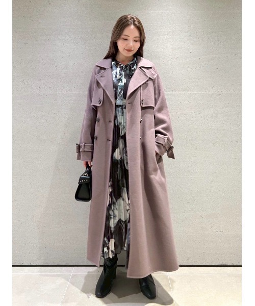 CELFORDで人気のウール地で仕立てたトレンチデザインのコートです。今季はIVRを新色に加えました。 18.5μのスーパー原料を使用した二重織素材を使用しています。一度起毛してからメルトンに仕上げることで原料本来の柔らかさを最大限に活かしたこだわりの素材でリバー仕立てのトレンチコートを作りました。 袖と背中に裏地を入れています。首元にはスロートラッチがついている為、首元を閉じて着用すると洗練された印象に。 全体的にIラインを強調したウエスト、袖口にはベルト付きでレザー調のバックル付きとなります。 【おすすめ骨格タイプ】 ■骨格ストレート ■骨格ウェーブ ■骨格ナチュラル 透け感:なし,裏地:袖と背裏,伸縮性:なし,光沢感:なし,生地の厚さ:厚手 ※照明の関係により、実際よりも色味が違って見える場合があります。 またパソコン・スマートフォンなどの環境により、若干製品と画像のカラーが異なる場合もございます。予めご了承ください。 商品の色味は、商品単品画像をご参照下さい。 ※商品画像はサンプルのため、色味やサイズ等の仕様に変更がある場合がございますので、予めご了承ください。
