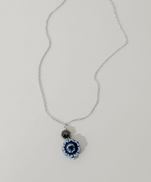【手仕事のような温もりを感じるモチーフネックレス】 ●立体的なフラワーモチーフが主役のデザイン ●艶やかな質感と深みのあるカラーリング ●華奢なシルバーカラーのチェーンがモチーフを引き立てる ヴィンテージのパーツのような味わい深い表情が魅力のネックレスです。 ニュアンスのある発色がコーディネートに奥行きのある華やかさを添えてくれます。 シンプルなニットやシャツの襟元にさらっとプラスするだけで、自分らしいスパイスの効いたお洒落が完成します。 【2026 Spring/Summer】【26SS】 ※メッキ製品(特に銀メッキ)は変色しやすいため、こまめなお手入れで防止してください。長期放置やスプレー香料などの同時使用は、特にお避けください。 ※メッキ製品は、アレルギー体質の方や体調が低下している方など、かぶれることがあります。肌に異常を感じた時はご使用をお止めいただき専門医にご相談ください。 ※アクセサリーは壊れやすいものです。取り扱いに注意していただき大切にご使用いただけるようお願い申し上げます。 総重量 : 約6g ※商品画像は、光の当たり具合やパソコンなどの閲覧環境により、実際の色味と異なって見える場合がございます。予めご了承ください。 ※商品の色味の目安は、商品単体の画像をご参照ください。 ▼お気に入り登録のおすすめ▼ お気に入り登録商品は、マイページにて現在の価格情報や在庫状況の確認が可能です。 お買い物リストの管理にぜひご利用下さい。 -