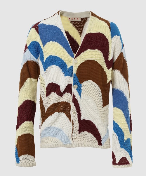 YOYO / クロシェ編みカーディガン ・日本のヨーヨーをイメージした柄 ・マルニらしいプレイフルなカラーコンビネーション ・リラックスフィット ・サラリと羽織れるコットン素材 ※商品お届けの際の納品書は、お買い上げ日を証明する書類として大切に保管してください。(修理などの際に必要となります)