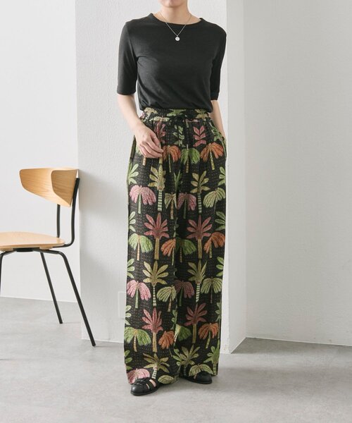 サッカー生地で涼しい着心地。 デザインと機能性を兼ね備えたリラックスパンツ エキゾチックなヤシ柄が目を惹く 華やかなデザインのリラックスパンツが登場。 素材には凹凸感のあるサッカー生地を使用していて 通気性が良く、暑い日でも涼しい着心地。 また、綿100%でお肌に優しいのもポイントです。 華やかなデザインなのでシンプルな無地のトップスに合わせたり ワンピースとレイヤードさせて、裾からチラ見せするようなコーデがおすすめ。 ■ポイント ・sampo×earコラボ ・ピンクとグリーンの鮮やかなヤシの木柄がポイント ・凹凸感のあるサッカー生地で通気性が良く涼しい着心地 ・綿100%素材でお肌にも優しい ・ウエスト総ゴム&紐で調整可能 ・ヒップ太もも周りゆとりのあるサイズ感 ・両サイドと左ヒップにポケット付き ■サイズ補足 ウエスト66~97cm、股上(前)34cm、股上(後)39cm、股下68cm、もも周り72cm、裾周り57cm 《スタッフ着用コメント》(身長162㎝/普段着用サイズ:Mサイズ/骨格ウェーブ) 靴なしで着用しましたが、 裾は床に着き、足の甲が完全に隠れるくらいの長さ。 ヒップ太もも周りにかなりゆとりがあり走ったりしゃがんだりと アクティブな動きもしやすい着心地です。 ■素材・お手入れ方法 素材:綿100% 洗濯表示:手洗い ・・・・・・・・・・・・・・・・・・・・・・ 透け感:ややあり 裏地:なし 伸縮性:なし 光沢感:なし 生地の厚さ:やや薄手 ・・・・・・・・・・・・・・・・・・・・・・