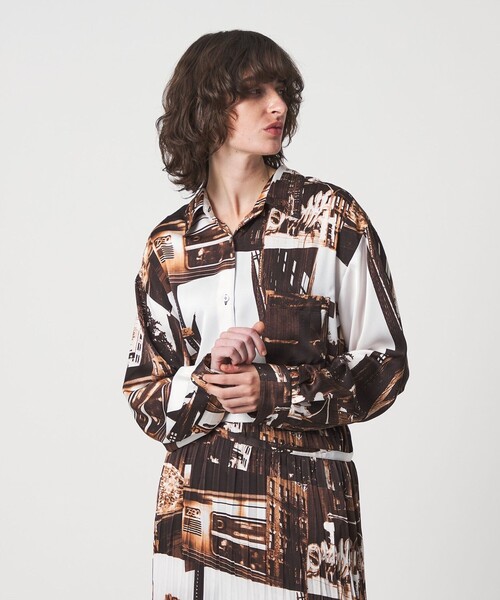 ニューヨークの風景写真をコラージュしたセピアカラーがレトロシックなシャツ。 テロンとした肌離れのよい生地感で、モードやカジュアルなアイテムと合わせて、エレガントな大人のカジュアルスタイルに導きます。 一枚着やベストやビスチェをレイヤードしたり、キャミソールやブラトップに羽織って着映えする一着。 共地のラップスカートと合わせてワンピースのような着こなしも素敵です。(対象品番:86246000000) ============================ 裏地:なし 透け感:なし 伸縮:なし 光沢感:なし ============================ 【注意事項】 ※モデル着用はサンプルのため、商品の柄の出方・色味の目安は、商品単体の画像をご参照ください。 ※商品に「取り扱い上の注意書き」、「洗濯表示」がございます場合は、使用前に必ずご確認ください。 ※商品画像は、光の当たり具合やパソコンなどの閲覧環境により、実際の色味と異なって見える場合がございます。あらかじめご了承ください。 店舗へお問い合わせの際は、全国の6(ROKU)各店舗まで下記の品名/品番をお申し付けください。 品名:6 PE NY/PT SHT ** 品番:86112000010