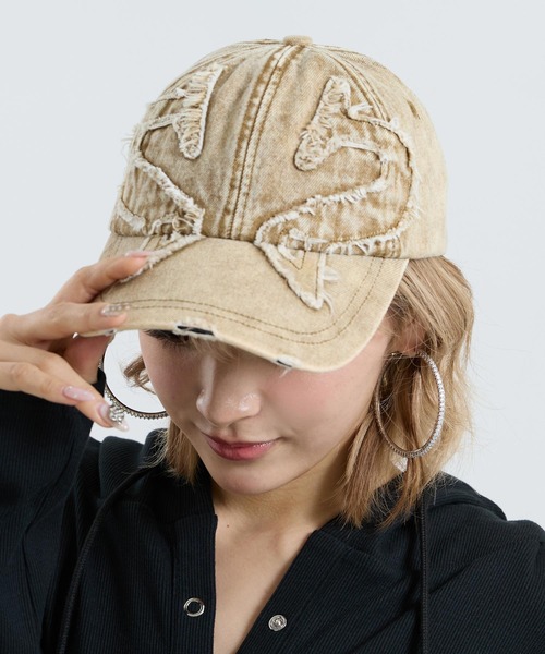 視線を奪う、立体ワッペンで差をつける●大胆なワッペンとダメージ加工が、スタイルに奥行きを生む。●無造作にかぶるだけで、計算されたこなれ感を演出。●カジュアルの枠を超えた存在感で、いつもの装いを格上げします。♦detailウォッシュ加工を施したデニム素材に、立体感のあるワッペンを大胆にデザインし、ヴィンテージライクな雰囲気に仕上げたキャップ。随所に入れたダメージディテールが程よいラフさを加え、シンプルなコーデにも映えるアクセントに。しっかりとしたフォルムで顔まわりをすっきり見せ、バックのアジャスターでサイズ調整も可能。被るだけでスタイリング全体を引き締める、主役級のアイテムです。♦stylingストリートに仕上げたい→ビッグTやカーゴパンツと合わせてラフにまとめるモードミックスにしたい→ブラックコーデの外しとして投入甘辛バランスを楽しみたい→ワンピースやタイトトップスと合わせて抜け感を演出♦コーデにオススメウォッシュ加工 ライン スウェット カーゴパンツ(152-5807)ポイント刺繍ヘンリーネックフーディーリブワンピース(797-9479)※調節可※本製品は特殊な加工を施しているため、一点一点風合いが異なります。特に、再生産・再入荷の時期により、染めムラや色落ち感など色合い、サイズ感に若干の個体差が生じる場合がございます。あらかじめご了承ください。※この商品は非常に色落ち、色移りしますので十分ご注意ください。※生地のデザイン上、実際の商品と画像とで柄の配置が異なる場合がございます。予めご了承ください。※商品のお取扱いに関しましては、商品に付属のアテンションカード、洗濯ネームをご覧ください。※モデル着用画像は光の当たり具合で色味が違って見える場合がございます。※商品の色味の目安は、商品単体の画像をご参照ください。【お買いものをお楽しみいただく為に!】▼商品のお気に入り登録完売カラーの再入荷通知や、ラスト1点の通知、セールの通知も受け取ることができます。▼ブランドのお気に入り登録新商品や再入荷など、いち早くブランドのお得な情報を受け取ることができます。