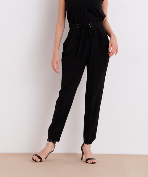 ヒップまわりは程よくゆとりを与え裾に向かって細くなったシルエット タックドレープのポケットデザインがトップスインのスタイリングにアクセントを与えてくれます。 ウエストにはDカンとスピンドルのデザインで品よくきれいめな印象に仕上げました。 ストレッチ性もあり、後ろウエストはゴム仕様なのでストレスフリーなのもポイントです。 【素材説明】 軽さと程よいハリ感を兼ね備えた2WAYストレッチ素材。 なめらかなタッチですっきりとした表面感。清涼感もありしわになりにくいのも特徴です。 【商品特性】 ストレッチあり/ショート丈の裏付き/左ファスナー/ポケット×4/後ウエストにゴム入り/くるぶしが見える丈 ◆お買い物をよりお楽しみいただくために◆ ・「商品のお気に入り登録」で完売カラーの再入荷やラスト1点、セール通知を受け取ことができます。 ・「ブランドのお気に入り登録」で新商品の入荷情報など、いち早く受け取ることができます。